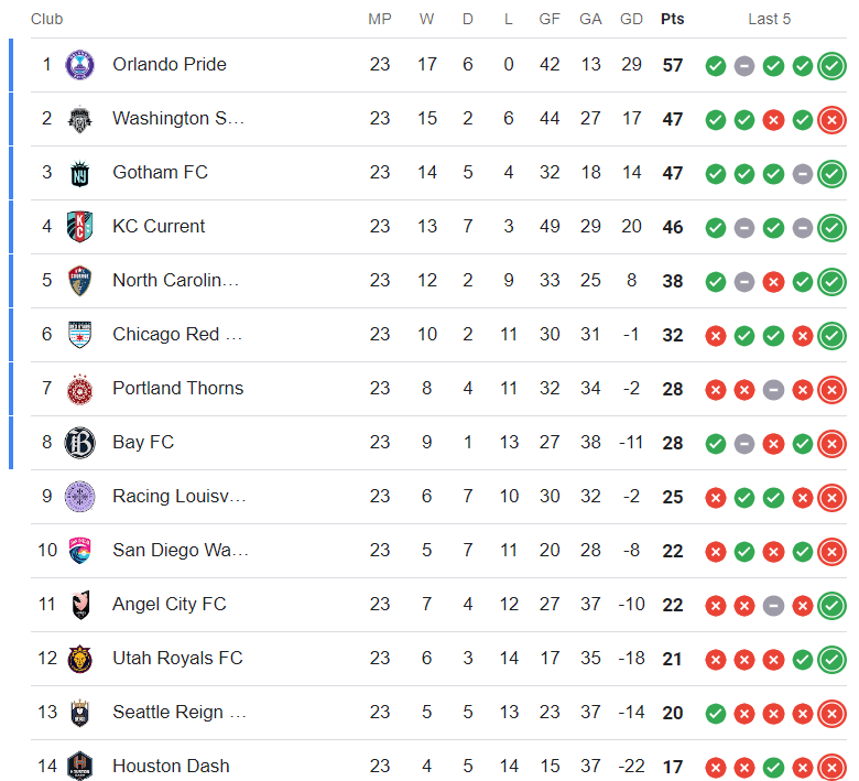 Updated NWSL Standings